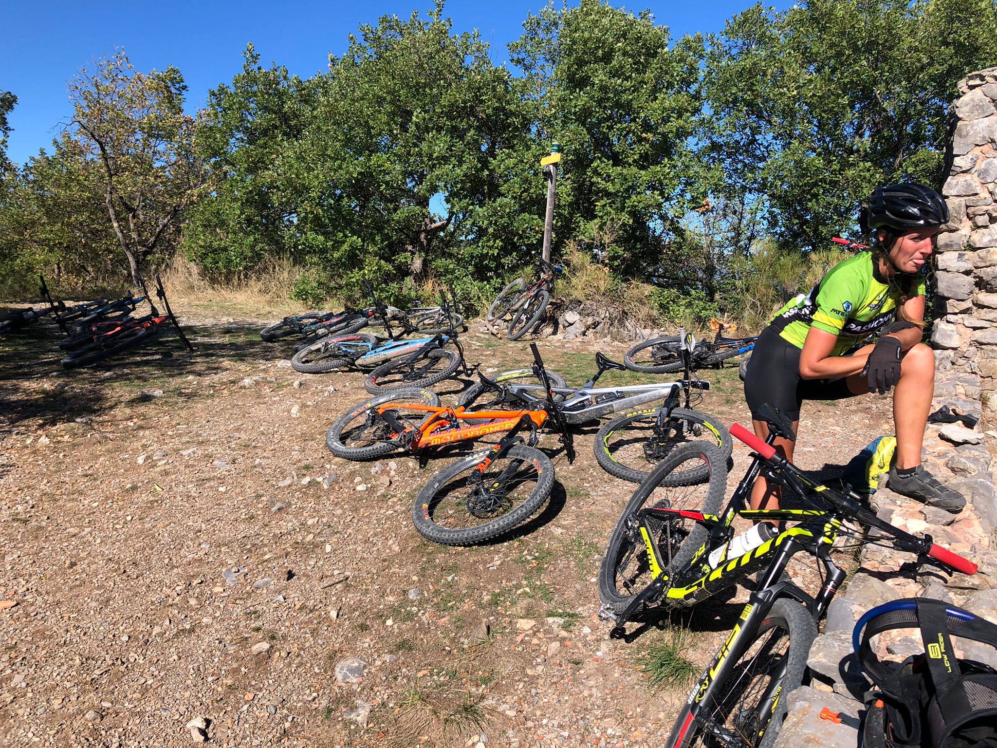 Justement, nous sommes encore dans un spot des Terres Noires. Le lieu est idéal pour casser la croute. Glup, les sandwichs sont riquiqui. On aurait dû vraiment insister sur ce point, lorsqu’on randonne en vélo, l’encas doit être consistant.