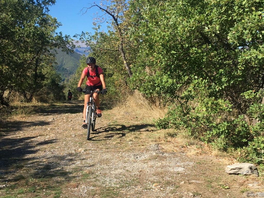 Retour vers Digne-les-Bains pour rejoindre le Plan d’eau des Ferréols. Nous longeons la Durance par les voies cyclables. Puis nous nous élevons pour arriver au village de Gaubert. La suite se passe dans les singles en forêt, nous arrivons à un rocher en granit. Loïc s’amuse à le monter et à le descendre, on ne l’arrête plus !