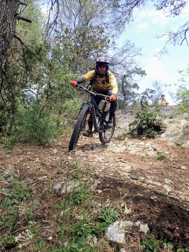 Reprise pour les descentes, un régal de singles ponctués de bosses d’épingles et de toboggans, appréciés par tout le groupe.