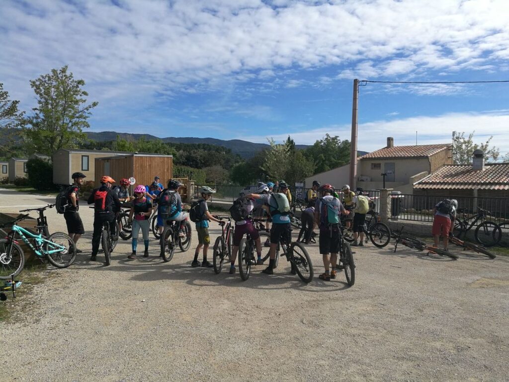 Ce week-end est parti d’une première rencontre impromptue, à la rando VTT de Cadenet « les contreforts du Luberon » où notre petit groupe croise le chemin d’Elise et de Laurent. Deux membres du club MVTT avec qui nous avons fini le parcours ensemble. Après un échange de contacts, c’est dit : nous irons à la Matheysienne VTT et ils viendront à la VTT vignes 2023. Bon… nous ne sommes pas allés à la Matheysienne VTT 2023 MAIS Elise et Laurent ont mené leur club jusqu’à Pertuis pour la rando VTT Vignes ! C’est lors de cette deuxième rencontre que l’idée de faire un échange pour nos weekends club respectifs germe. Les deux présidents en discutent de leur côté. C’est à l’assemblée générale que nous décidons tous les deux d’organiser ces événements. Notre cher président, Pierre André nous donne le contact de Kévin, le vice-trésorier du club MVTT avec qui nous échangerons par la suite. Les dates sont rapidement arrêtées. Les souhaits de chacun sont définis. De notre côté, nous réunissons un petit groupe de volontaire pour organiser la venue des matheysins. Nico se propose d’accompagner le groupe enfants le samedi matin, JD le groupe adultes toute la journée du samedi et Xavier le dimanche matin pour la session enduro.